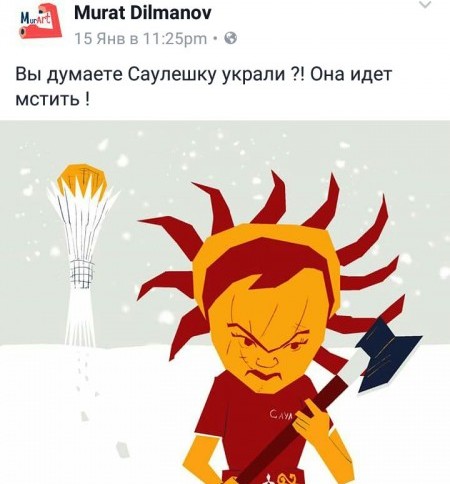 Особенно активно казахстанцы заговорили о маскотах, когда с водно-зеленого бульвара в Астане таинственно исчезла одна из фигур под названием Сауле. Позже выяснилось, что маскот забрали на реставрацию в связи с повреждениями, однако юмористов казнета было уже не остановить