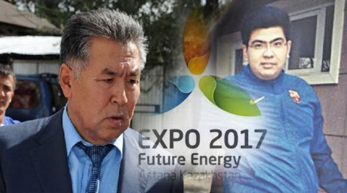 Первый скандал, затронувший интересы выставки, разгорелся в конце 2013 года, когда в Алматы произошло ДТП с участием сына руководителя департамента строительства АО "НК "Астана ЭКСПО-2017" Кажимурата Усенова. Максат Усенов на автомобиле BMW X6 на высокой скорости сбил шесть человек, стоявших на тротуаре. Один из пострадавших погиб. Виновник аварии примирился с семьей погибшего и не понес за это наказания. При этом его наказали арестом на 45 суток за нанесение среднего вреда здоровью других потерпевших.