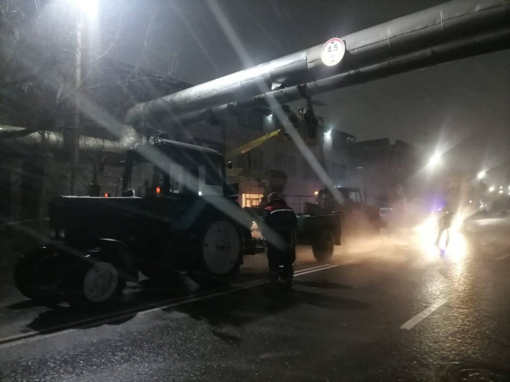 "Оперативно-выездные бригады АО "Астана-Теплотранзит" занимаются локализацией поврежденного участка. На время проведения работ улица частично перекрыта. Под отключение попал ряд адмобъектов и жилых домов. Ориентировочное время устранения порыва - 5-8 часов", - говорится в сообщении в Telegram-канале акимата.