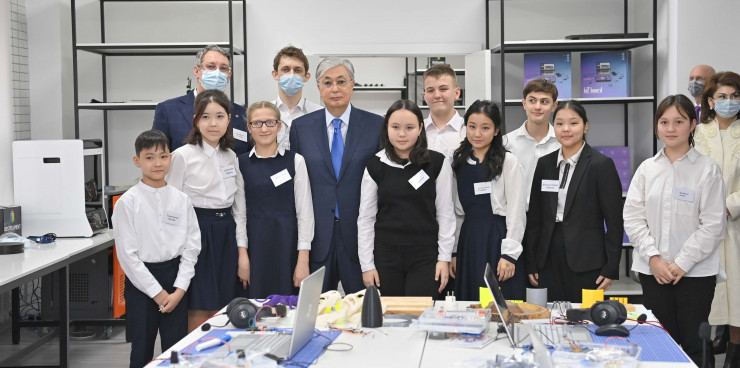 В ходе посещения Глава государства пообщался со школьниками и поздравил их с праздником Наурыз. Президент вручил детям подарки, в том числе учебный телескоп последнего поколения, управляемый с мобильного устройства.