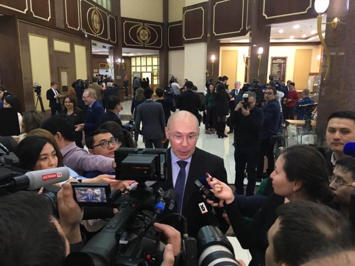 11.30 Главу МФЦА Кайрата Келимбетова спросили о том, как он воспринял заявление Нурсултана Назарбаева об прекращении полномочий.