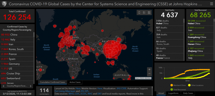 Вчера, 11 марта, Всемирная организация здравоохранения (ВОЗ) объявила новый коронавирус пандемией. Заболеванием охвачено больше 126 тысяч человек в 114 странах. Число погибших превысило 4,6 тысячи человек. В то же время полностью излечились от болезни более 68 тысяч пациентов.