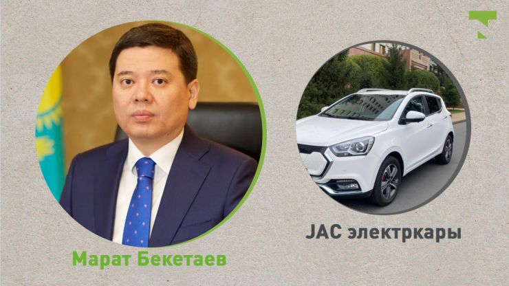 Министрлер арасында бірінші болып әділет министрі Марат Бекетаев қызметтік көлігін электркарға ауыстырды. Әділет министрлігі қыркүйекте Tengrinews.kz сауалхатына берген жауабында мұның себебі қызметтік көлікті ұстауға кететін қаражатты үнемдеу екенін жазды. Бекетаевтың жаңа көлігі - JAC электркары. JAС электркарының бағасы - 15 миллион теңге.