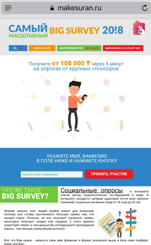 Злоумышленники посредством мобильных мессенджеров и электронной почты осуществляли рассылку с приглашением пройти опрос на интернет-ресурсе makesuran.ru за денежное вознаграждение с последующими выплатами средств участнику опроса.