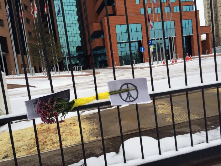 Между тем, в Астане охранники не пускают жителей столицы в здание посольства, ссылаясь на то, что это частная территория. Астанчане оставляют цветы и фотографии перед входом в посольство возле ограждения. Позже сотрудники заносят цветы в здание, где расположено посольство Франции в Казахстане.