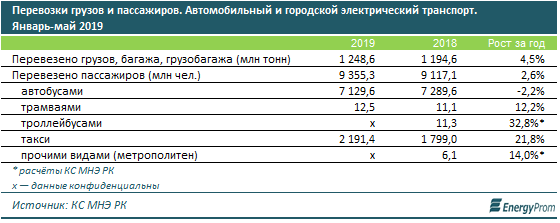 "За пять месяцев 2019 года автомобильным и городским электрическим транспортом было перевезено 9,4 миллиарда пассажиров - это на 2,6 процента больше, чем в аналогичном периоде годом ранее. Традиционно автобусы - самый популярный у казахстанцев транспорт: 7,1 миллиарда пассажиров, что, впрочем, на 2,2 процента меньше, чем годом ранее. На втором месте по популярности по-прежнему такси. Примечательно, что тут динамика обратная: сразу плюс 21,8 процента за год. Пассажиропоток здесь увеличился до 2,2 миллиарда пассажиров по итогам пяти месяцев текущего года. Перевозки пассажиров трамваями также выросли на 12,2 процента за год и составили 12,5 миллиона человек", - пишет портал Energyprom.kz.