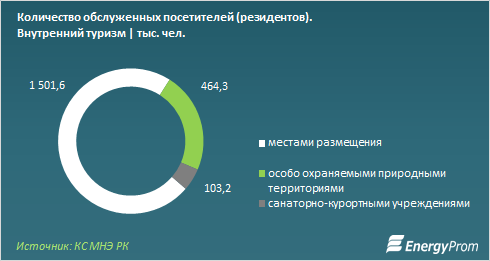 Между тем почти 73 процента внутренних туристов, а это около 1,5 миллиона человек, воспользовались услугами мест размещения - гостиницами, мотелями, домами отдыха и прочими туристскими базами. Еще 22 процента (464,3 тысячи туристов) посетили природные заповедники и прочие особо охраняемые природные территории. Около пяти процентов (103,2 тысячи туристов) выбрали для отдыха санаторно-курортные учреждения.