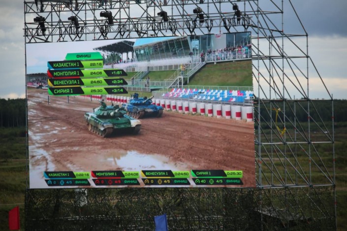 На Армейских международных играх танк казахстанской команды финишировал первым в заезде индивидуальной гонки, обойдя соперников из Монголии, Венесуэлы и Сирии. Экипаж в составе командира - старшего лейтенанта Ермахана Кудайбергена, механика-водителя - старшего сержанта Думана Байжанова и наводчика - старшего сержанта Азата Шоинбаева прошел дистанцию за 22 минуты 16 секунд.