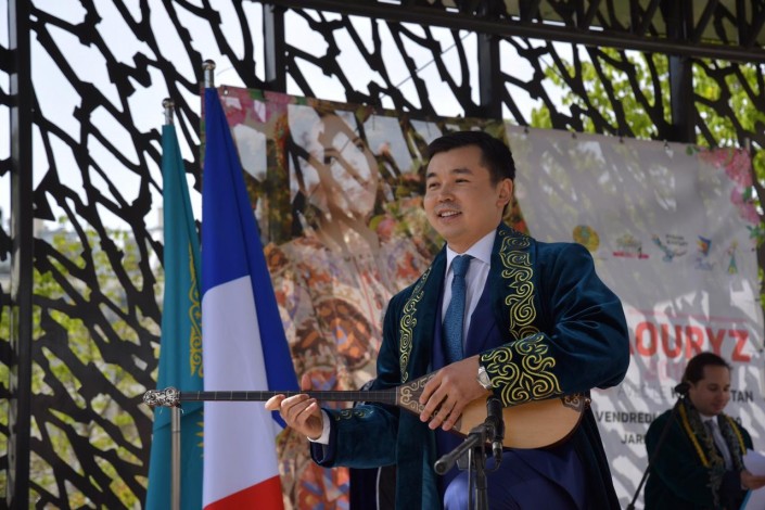 В Париже отпраздновали Наурыз. Одним из номеров программы, подготовленной посольством Казахстана во Франции, стало выступление сына легендарного исполнителя Джо Дассена Джонатана под аккомпанемент домбры, передает корреспондент Tengrinews.kz.