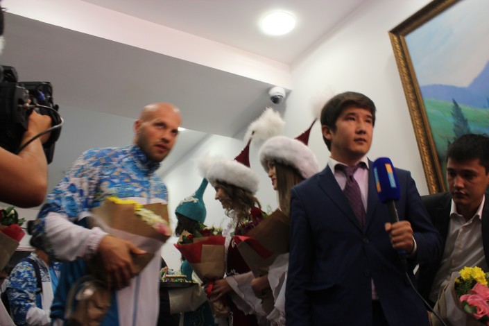 Напомним, в ночь с 23 на 24 августа в Международном аэропорту столицы встречали олимпийские сборные по боксу и женской борьбе. Увидеть одними из первых на Родине спортсменов приехали родные и близкие, городские власти, а также гости и жители Астаны. Аким города Асет Исекешев подарил олимпийскому чемпиону Данияру Елеусинову и серебряным призерам Игр Василию Левиту и Гюзель Манюровой новые автомобили. Акимат решил преподнести такой щедрый подарок этим спортсменам, так как именно они представляли Олимпийскую сборную Казахстана от Астаны. Из аэропорта столицы спортсмены с семьями уехали на своих Toyota Land Cruiser и Land Cruiser Prado.