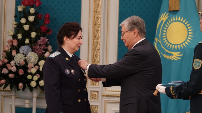 "Орденом "Курмет" награждается заместитель начальника службы по надзору за законностью приговоров Генпрокуратуры Радимхан Дубаева. Под ее руководством был реализован социально значимый проект "10 мер по снижению тюремного населения", - объявил Токаев.