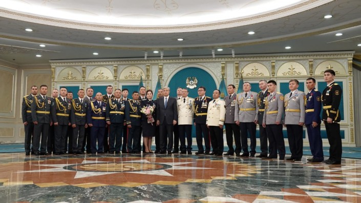 В Акорде прошла церемонии вручения специальных воинских званий и государственных наград Президентом Казахстана Касым-Жомартом Токаевым, передает корреспондент Tengrinews.kz. Он наградил почетными орденами и медалями сотрудников КНБ, прокуратуры, полицейских, военных и пожарных.