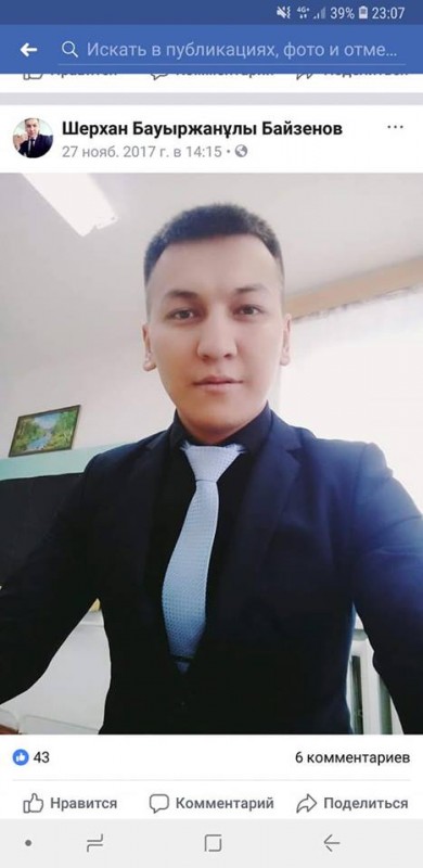Сообщается, что сейчас Шерхан Байзенов в отпуске до 12 августа. Он находится под подпиской о невыезде. В средней школе села Белес Байзенов работает с 2014 года. Он окончил колледж в Уральске.