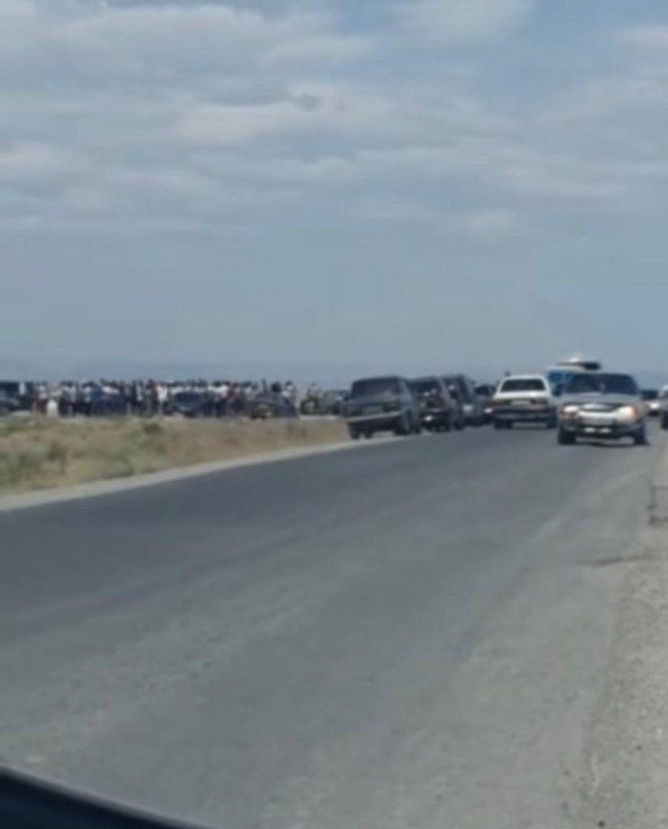 Позже в соцсетях появились кадры, на которых видно большое скопление людей и автомобилей у дороги. Авторы записи сообщают, что видео снято в поселке Шорнак.
