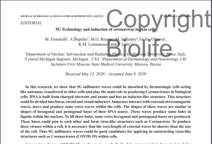 Әлеуметтік желі қолданушылары «5G технологиясы және тері жасушаларында коронавирустың индукциясы» мақаласын таратқан. Мақалада "5G технологиясы мен COVID-19 байланысты" делінген. Бұл туралы factcheck.kz басылымы жазған.