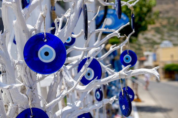 Конечно, в эти приметы верят не все. Но те, кто хочет избежать сглаза, носят амулет - голубую стеклянную подвеску с нарисованным на ней глазом. Этот же амулет можно найти и в Турции, возможно, это влияние османов во время завоевания ими Крита.