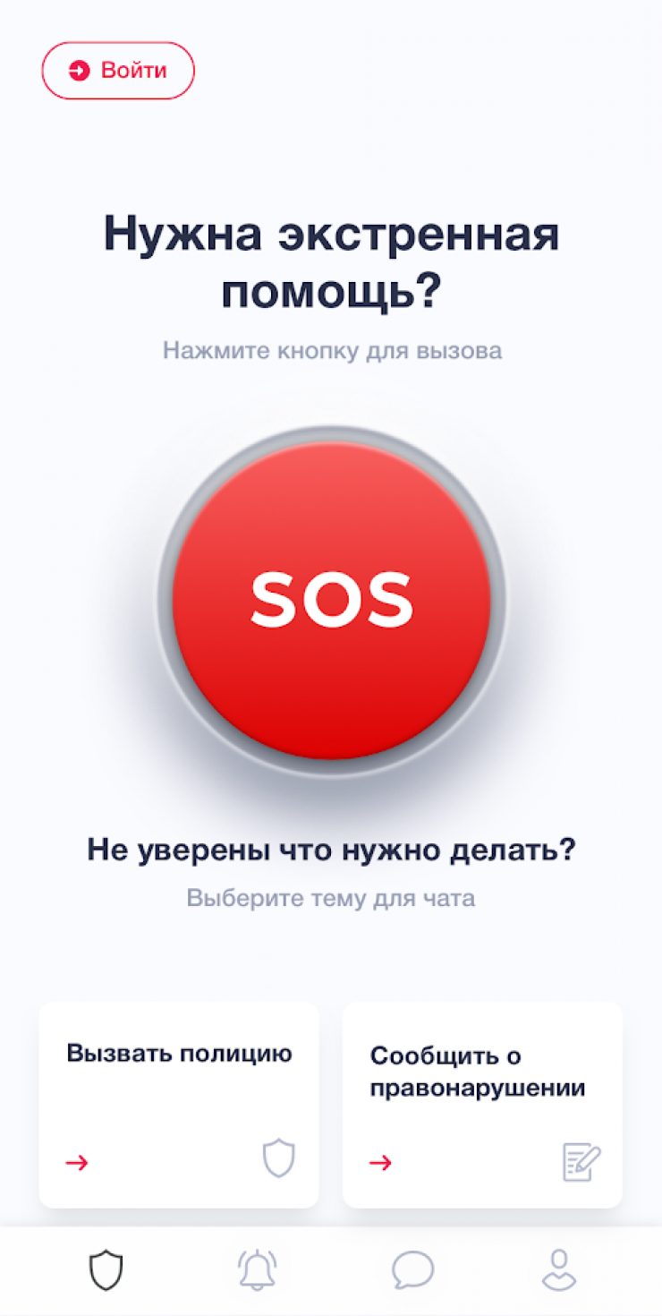 - связаться с оператором путем аудио- и видеозвонка, при этом автоматически определяется местоположение звонившего, оператор может видеть происходящее и принять экстренные меры реагирования;