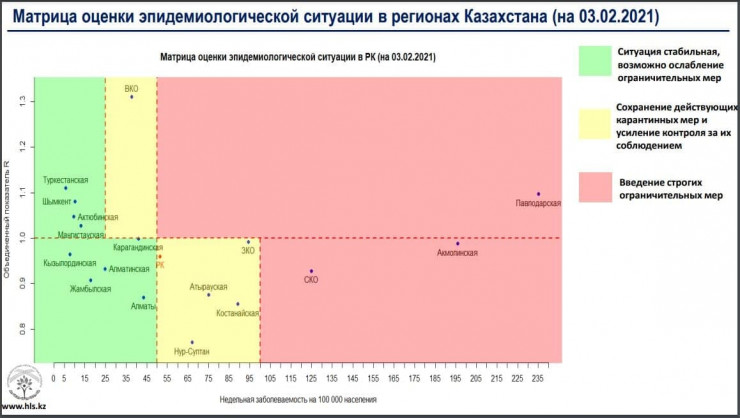 Сообщается, что в "красной" зоне все еще находятся Акмолинская, Павлодарская, Северо-Казахстанская области.