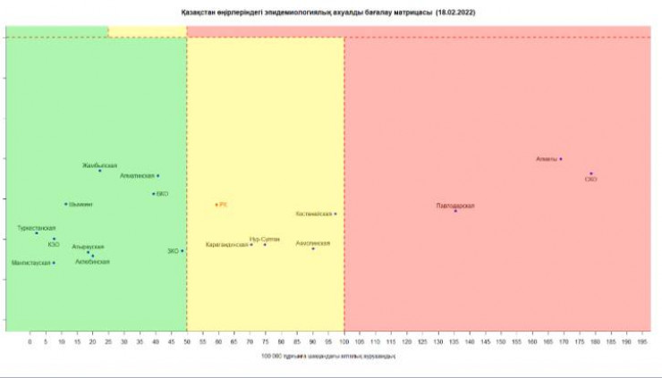 • в "красной" зоне находятся Алматы, а также Павлодарская и Северо-Казахстанская области;