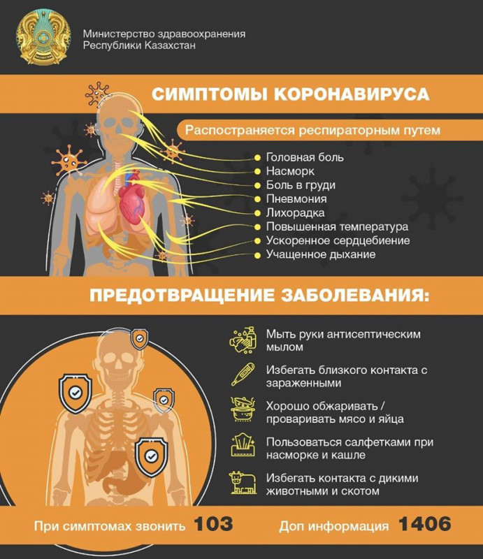 При Министерстве здравоохранения Казахстана создан cаll-центр 1406, +7 717 2 76 80 43, куда граждане республики могут позвонить и в круглосуточном режиме узнать всю интересующую информацию по ситуации о заболеваемости китайским коронавирусом в мире, а также о мерах профилактики и основных симптомах заболевания. Об этом сообщается на странице ведомства в Facebook.