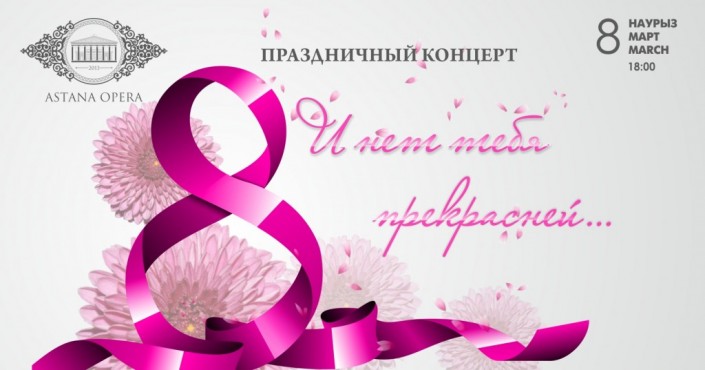 Самые романтические композиции зарубежных и казахстанских мэтров станут подарком прекрасному полу на праздничном концерте "И нет тебя прекрасней" в большом зале театра "Астана Опера". В программе - арии и дуэты из опер Пуччини, Верди, Чайковского, Массне, а также "Камар-сулу" Рахмадиева, "Кыз Жибек" Брусиловского в музыкальной редакции Мухитдинова. Прозвучат народная песня "Кусни Корлан", "Айттым салем, Каламкас" Абая и другие песни о любви и прекрасных женщинах. В концерте участвуют симфонический оркестр, хор и детский хор "Астана Опера".