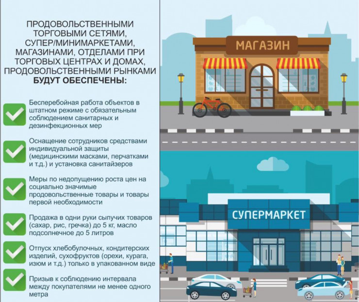 - Усилены санитарные нормы. Дезинфекция проводится во всех соцобъектах, ТРЦ, рынках, подъездах ЖК, гостиницах, а также на остановках, в автобусах и так далее.