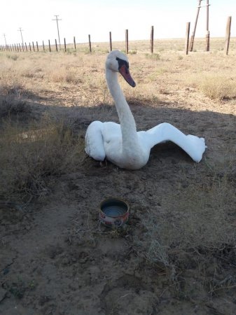 Двух лебедей нашли работники железной дороги возле села Боранкул в Бейнеуском районе Мангистауской области, передает Tengrinews.kz со ссылкой на Ладу.