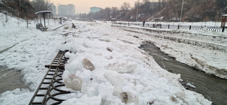 "Из-за перепадов температуры воздуха зафиксирован шугоход по реке Есентай, который снес ограждение. Сотрудниками Управления экологии и окружающей среды, ДЧС Алматы, Казселезащиты и Службой спасения принимаются оперативные меры по очистке и восстановлению территории. В настоящее время вода проходит беспрепятственно по руслу реки, опасности нет", - отметили чиновники.