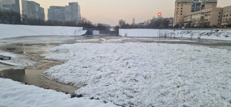 "Ледяная лавина" снесла ограждение реки Есентай в Алматы