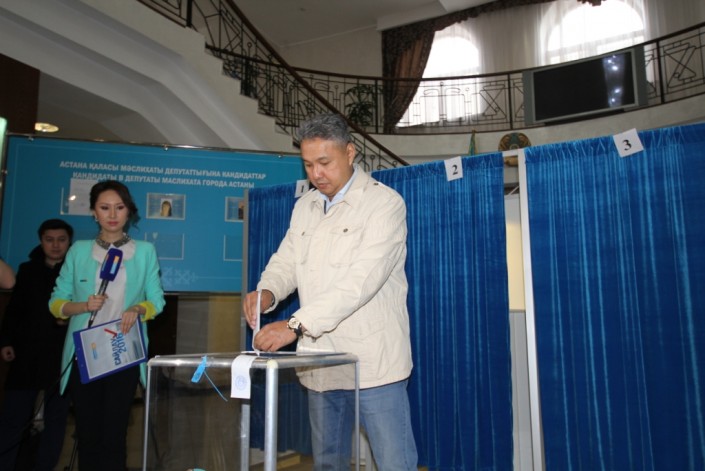 Председатель Демократической партии Казахстана "Ақ жол" Азат Перуашев проголосовал на выборах в Мажилис Парламента, сообщает корреспондент Tengrinews.kz