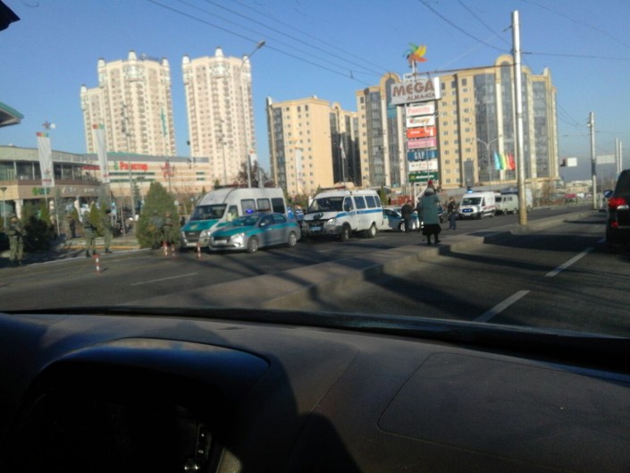 Люди с оружием возле ТРЦ встревожили алматинцев Фото©Tengrinews.kz.