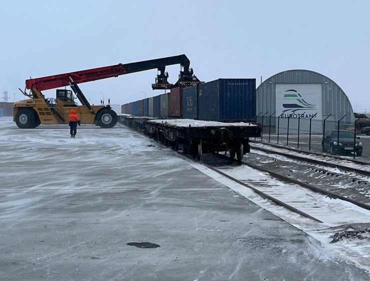 Эксплуатация нового терминала: перегруз контейнеров с узкой колеи на широкую.