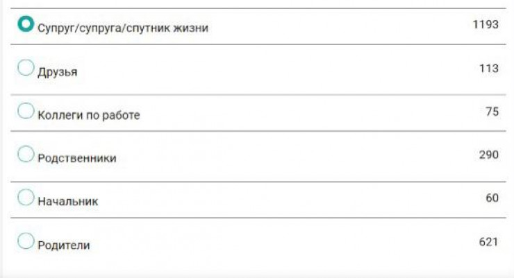 В новогоднем опросе мы задали нашим читателям еще один вопрос: "кто дарит самые хорошие подарки". Судя по ответам, больше всего казахстанцы ждут презентов от супруга/супруги или спутника жизни, родителей и родственников. Меньше всего голосов отдано за начальника и коллег по работе.