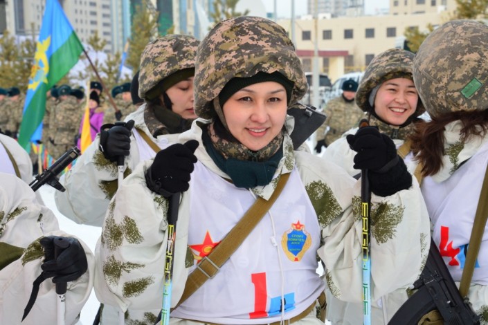 Лыжные соревнования с полным боевым снаряжением впервые прошли в Казахстане