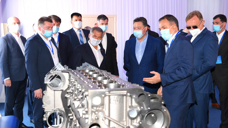 Сегодня Мамин и Минниханов провели переговоры и дали старт реализации в Казахстане трех совместных проектов автомобилестроения на 261 миллиард тенге инвестиций: строительство заводов по производству чугунного литья и компонентов для мостов грузовой техники "КАМАЗ" в индустриальной зоне Костаная, а также открытие производства автомобильных шин в Сарани Карагандинской области. В церемонии закладки камня под строительство в Костанае заводов по производству чугунного литья и компонентов для мостов грузовой техники приняли участие заместитель министра промышленности и торговли России А. Морозов, генеральный директор ПАО "КАМАЗ" С. Когогин и председатель совета директоров АО "АгромашХолдингKZ" А. Лаврентьев.