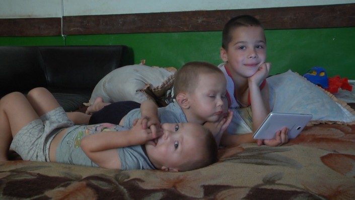Вероника Симоненко вместе с тремя детьми снимает времянку. Место, а точнее одна комната, изначально было оборудовано под зал для компьютерных игр. Сейчас с мужем женщина в разводе. У нее нет работы, а на руках трое детей 7 и 2,5 лет. Раньше Вероника работала учителем, у нее стаж 11 лет. Но сейчас она не может выйти на работу, ей не с кем оставить детей - ее малышам-близнецам Коле и Леше - по два с половиной года.