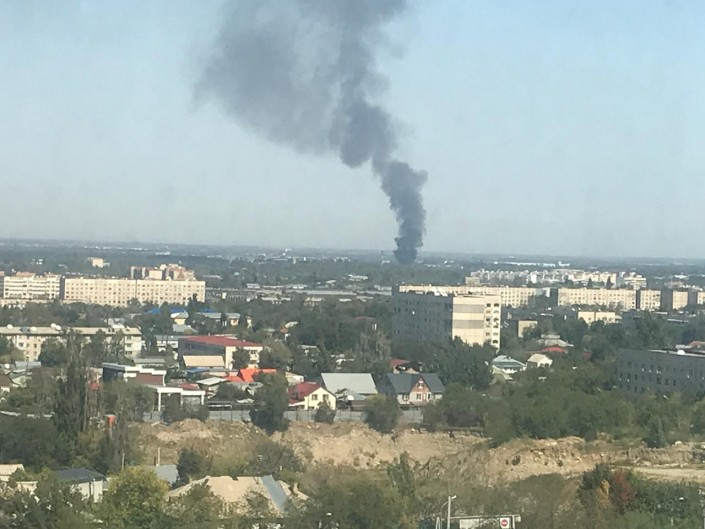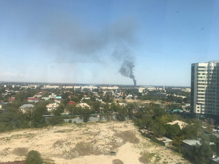 "17 сентября в 11:57 на пульт "101" поступило сообщение о пожаре в Жетысуском районе. Силы и средства направлены по повышенному номеру. По улице Ратушного, 84 А открытым пламенем горел мебельный цех с угрозой распространения на рядом расположенный производственный цех. На месте задействованы 20 единиц техники, 60 человек личного состава, 4 единицы поливомоечных машин, 2 эвакуатора, полиция - 20 человек, 3 единицы техники. Департаментом полиции произведено оцепление", - говорится в сообщении ДЧС.