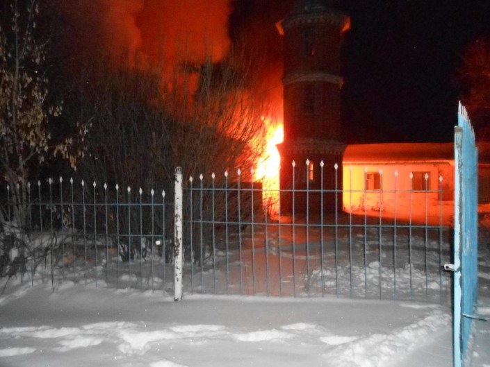 Огонь полностью уничтожил кровлю и потолочное перекрытие здания мечети в городе Мамлютка. По предварительным данным, жертв и пострадавших нет.