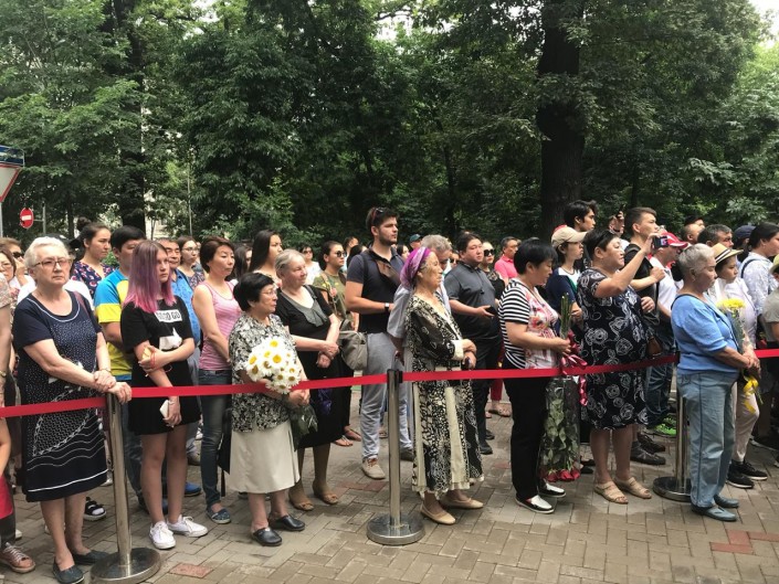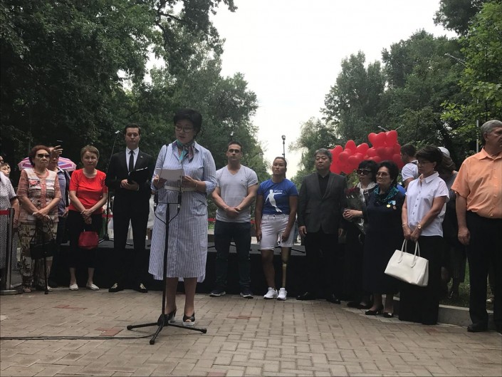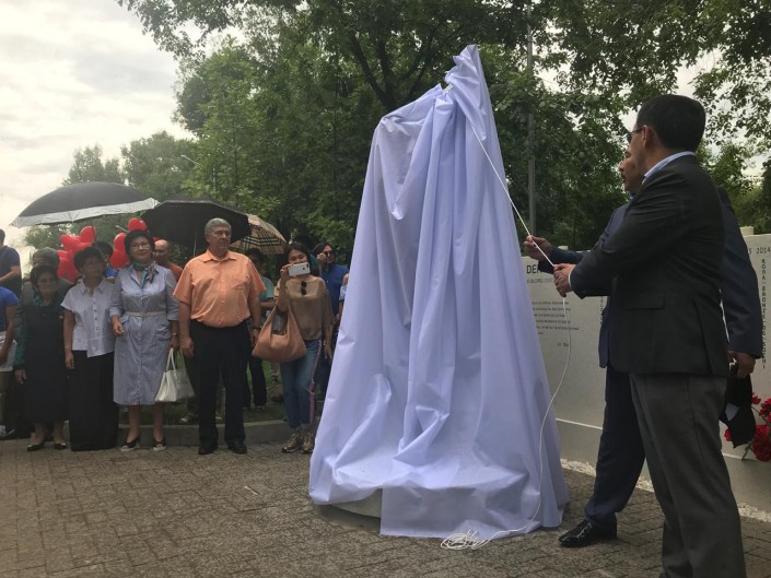 Мемориал открыли под композицию Дениса She Won't Be Mine. На церемонии присутствовали заместитель акима Алматы Арман Кырыкбаев, олимпийский чемпион по боксу Ермахан Ибраимов, тяжелоатлет Илья Ильин, народная артистка СССР Роза Рымбаева, народная артистка Казахстана Жания Аубакирова и многие другие.