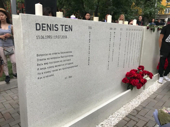 В Алматы открыли мемориал погибшему казахстанскому фигуристу, бронзовому призеру Олимпиады-2014 в Сочи Денису Тену, передает корреспондент Tengrinews.kz. Памятник установлен на месте его гибели на пересечении улиц Байсеитовой и Курмангазы.