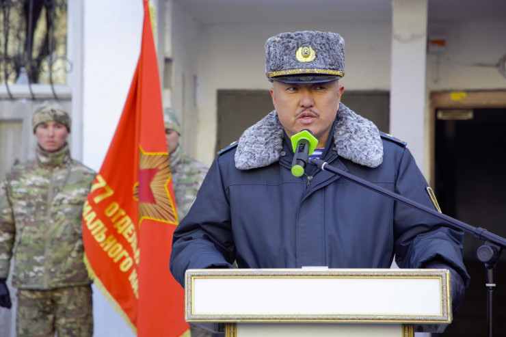 Митинг открыл командующий Десантно-штурмовыми войсками генерал-майор Алмаз Джумакеев. Он рассказал о жизненном и военном пути Кара Майора, его заслугах и бесценном военном опыте, которым Борис Керимбаев щедро делился с молодым поколением военнослужащих.