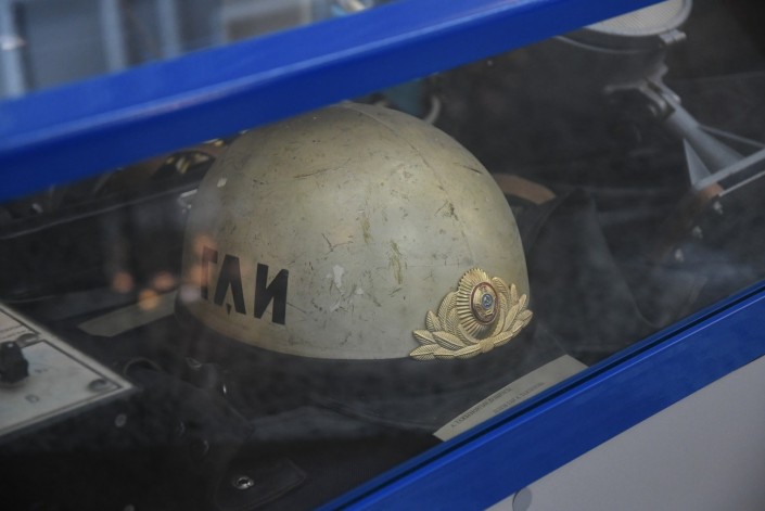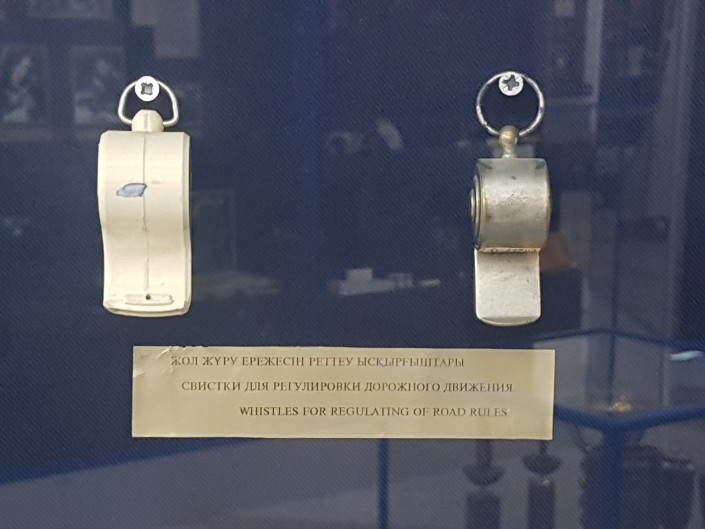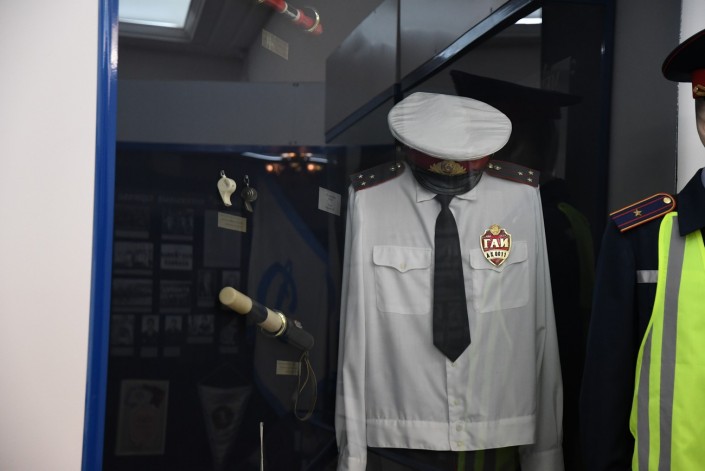 В музее можно увидеть шлем сержанта милиции Тажбенова, инспектора дорожно-патрульной службы ГАИ УВД Алма-Атинского горисполкома.