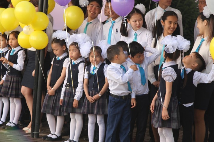 На сегодняшний день школьная форма для казахстанских учеников обязательна. В основном это темно-синие юбки, сарафаны, брюки, пиджаки и белые рубашки.
