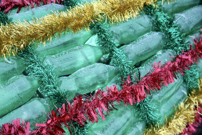 Бутылки были специально вымыты, очищены, а после прикреплены к металлическому каркасу, который, кстати, также был сделан из выброшенного металлолома. Украсили эко-елку оригинальными игрушками, сделанными из вторсырья школьниками. Высота эко-елки составила более двух метров. Таким образом авторы идеи хотят привлечь внимание к проблеме вырубки живых елей, а также к переработке использованных пластиковых бутылок.