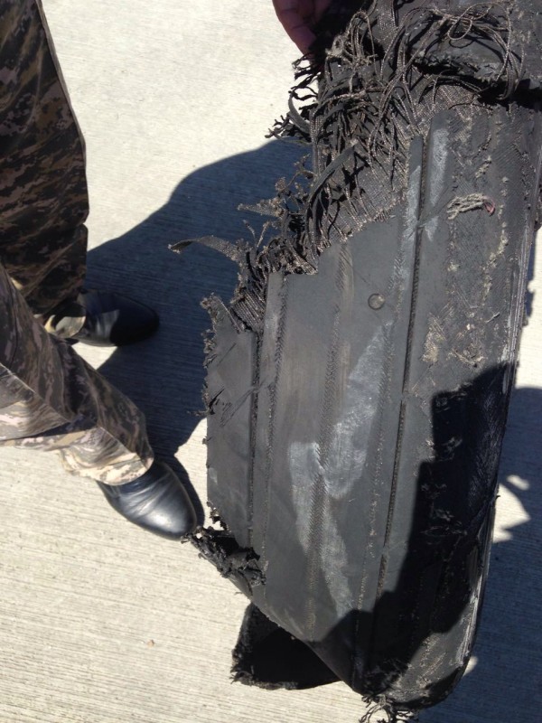 В пресс-службе Минобороны предоставили фотографии уцелевших и разорванных колес самолета. По словам представителя министерства, колеса были новые, практически без износа от производителя "Ярославский шинный завод".