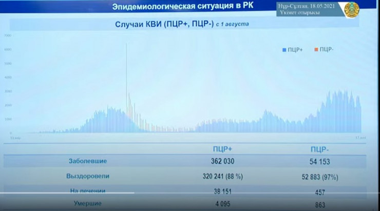 В частности, в нем говорилось, что, по данным Бюро нацстатистики, с начала пандемии на 1 мая в Казахстане от КВИ умерли 6 575 человек, из них 4 729 человек по итогам 2020 года и 1 846 человек за четыре месяца 2021 года.