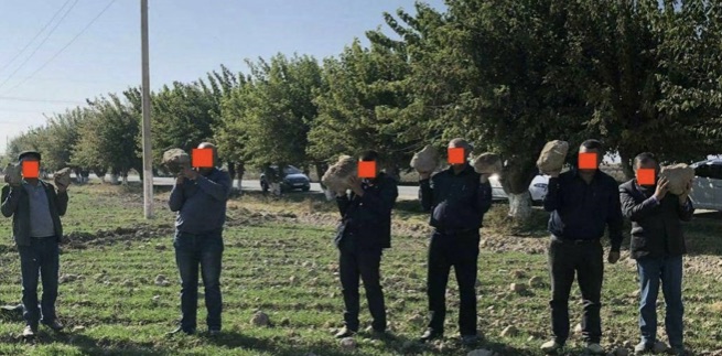 В тот же день распространилось новое фото, на котором нескольких мужчин заставили стоять с высоко поднятыми руками с огромными камнями. Предполагается, что этот инцидент также произошел в Ташкентской области, на этот раз в Бекабадском районе. Фермеры и ответственные лица были таким образом наказаны за плохое состояние полей.