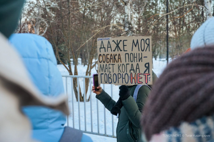В Астане прошел митинг за введение уголовной ответственности за домогательства, передает корреспондент Tengrinews.kz.