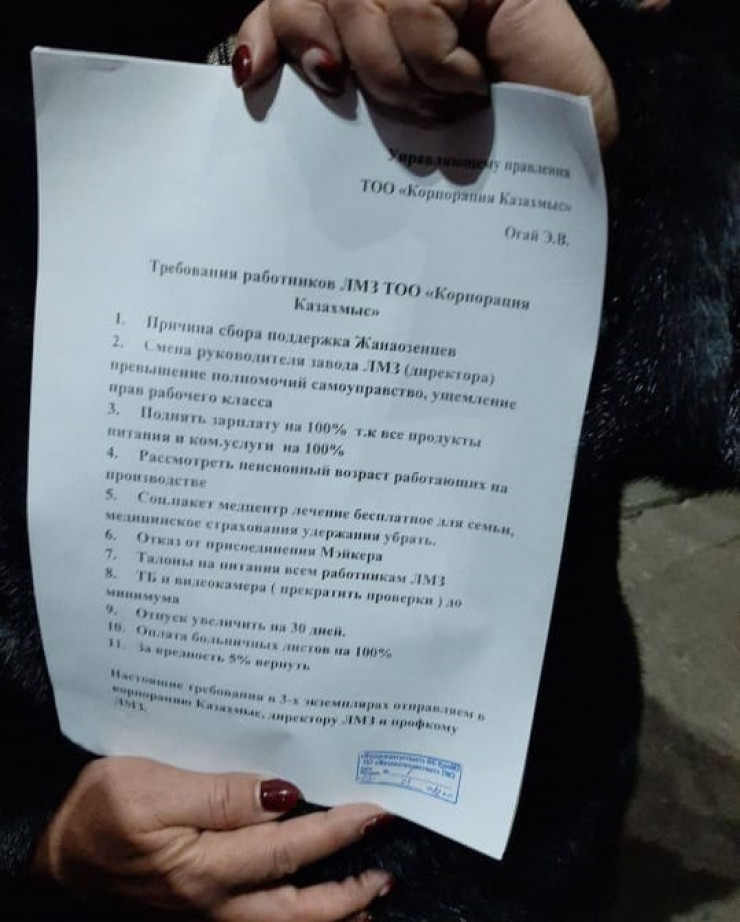 Кроме того, 4 января митинги прошли в Жанааркинском, Осакаровском районах Карагандинской области и в городах Жезказгане и Сатпаеве. Сегодня, 5 января, стало известно, что в ходе митинга объявили о забастовке работники корпорации "Казахмыс". Они выдвинули руководству ряд требований, среди которых главным является стопроцентное повышение заработной платы. В пресс-службе корпорации сообщили, что на данный момент руководство ведет переговоры с работниками. Также в Сети распространяются видеозаписи митинга из Балхаша.
