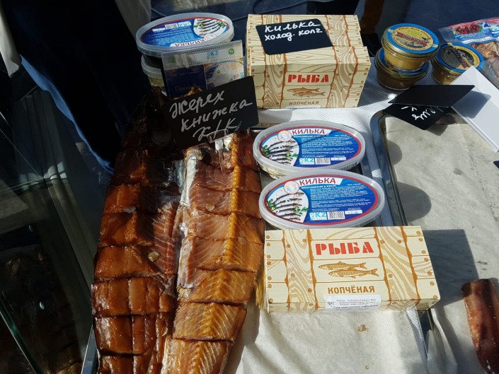 Здесь предлагали отведать рыбу, молоко, мясную продукцию, ягоды и овощи. "Лучше журналистам показать. Я-то все это видел", - сказал министр.